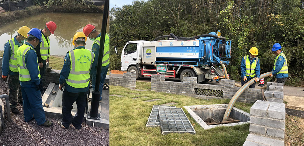 運維團隊在生活污水處理終端標準化運行維護作業(yè)培訓(二) (終端厭氧池定期吸污培訓)定期巡查至少每年吸污一次以上 將抽出的淤泥送到指定的地方進行無害化處理