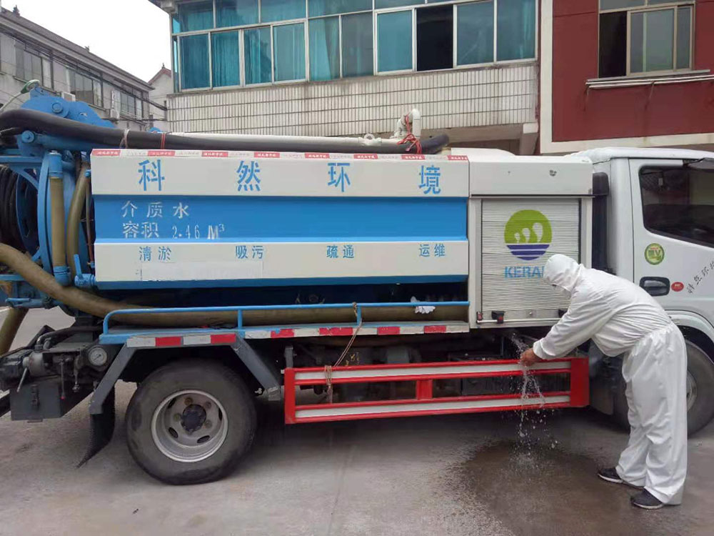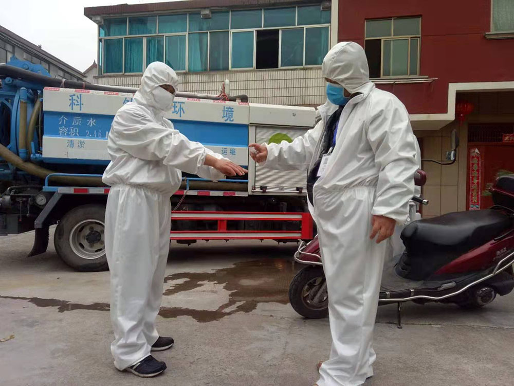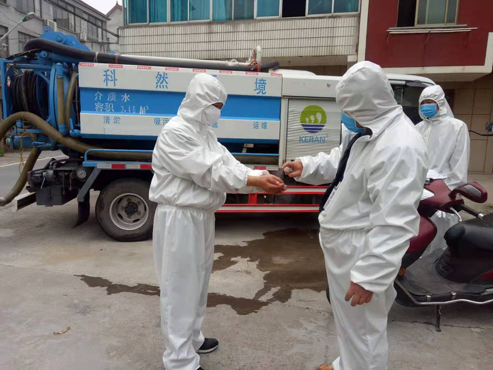 | 科然環(huán)境運(yùn)維組員工為號召國家防控疫情政策,對各個終端和管網(wǎng)的污水池進(jìn)行全面的清掏、消殺工作。 |